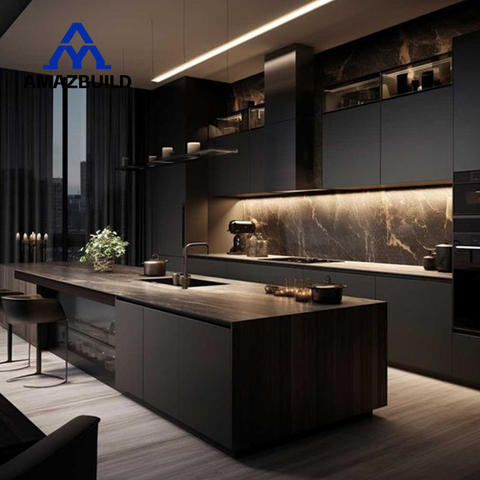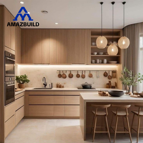 AMAZBUILD, gabinetes de cocina de diseño de lujo moderno y personalizado, juego de gabinetes de cocina de madera